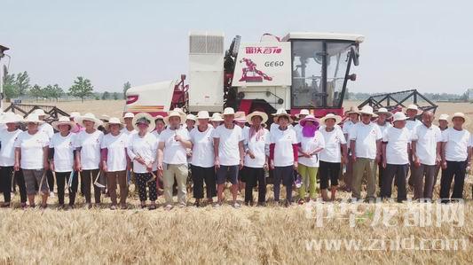 這群農(nóng)民的領(lǐng)頭人叫于培康,今年48歲,是培康種植專(zhuān)業(yè)合作社的理事長(zhǎng)。培康種植專(zhuān)業(yè)合作社擁有600多名社員,流轉(zhuǎn)土地2300多畝,實(shí)行統(tǒng)一配送物資、統(tǒng)一管理、統(tǒng)一收購(gòu),有效幫助了社員增收。該社統(tǒng)一種植的小麥“百農(nóng)4199”,今年畝產(chǎn)都在600公斤以上。該社社員任春華今年41歲,是錢(qián)店鎮(zhèn)任莊行政村村民。由于以前沒(méi)有增收渠道,家里又有病人,任春華是村里數(shù)得著的貧困戶。自從加入培康種植專(zhuān)業(yè)合作社后,糧食年年豐收,農(nóng)產(chǎn)品不愁銷(xiāo)路,任春華順利脫貧。前幾天看著金燦燦的麥地,他忽然產(chǎn)生一個(gè)念頭:在麥地里割出“中國(guó)夢(mèng)”三個(gè)字,以表達(dá)自己的喜悅之情。他把這個(gè)想法說(shuō)出來(lái)后,受到全體社員的一致稱(chēng)贊。對(duì)此,駐村干部也大為贊賞,并連夜“請(qǐng)求”記者幫助,還專(zhuān)門(mén)留下100多畝麥地作為拍攝現(xiàn)場(chǎng)。
