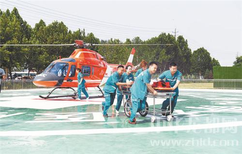 中華龍都網(wǎng)訊 6月28日上午,全市“防災減災立體救援”航空醫(yī)療救援啟動儀式在周口協(xié)和骨科醫(yī)院啟動。空中緊急救援一小時內(nèi)全省到達。圖為直升機救援演練現(xiàn)場。