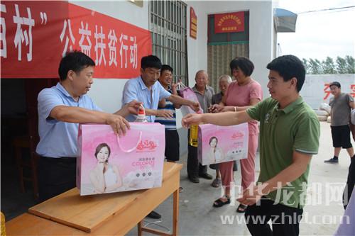 原來(lái),當(dāng)天是商水縣的“扶貧日”。這是平店鄉(xiāng)的一個(gè)民營(yíng)企業(yè)“胡廟雙英學(xué)校”積極響應(yīng)縣委及縣委統(tǒng)戰(zhàn)部、工商聯(lián)“百企幫百村”號(hào)召,對(duì)省級(jí)重點(diǎn)貧困村曾莊開展“一對(duì)一”幫扶的第二次“愛心行動(dòng)”?!翱h里百企幫百村活動(dòng)動(dòng)員會(huì)召開之后,我們按照要求積極與幫扶單位對(duì)接,前幾天給派駐村里扶貧干部送去了一些礦泉水。通過和村支書曾留黨、第一書記馬延年座談了解,得知該村原有建檔立卡貧困戶245戶,2016年以來(lái)已脫貧、未脫貧53戶(其中特困戶12戶),我們決定分批次、因戶制宜對(duì)這些重點(diǎn)貧困戶進(jìn)行“愛心幫扶”。今天給12戶特困戶每戶捐助一桶優(yōu)質(zhì)食用油、一個(gè)夏涼被,有學(xué)生的貧困戶每個(gè)學(xué)生發(fā)放一個(gè)書包。這次我們一共發(fā)放了價(jià)值1000余元的幫扶物品?!焙鷱R雙英學(xué)校負(fù)責(zé)人夏雙喜如是說(shuō)。