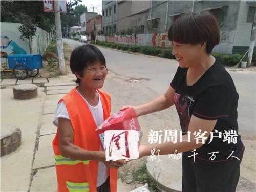 上午10時(shí)許,欣中基清潔公司經(jīng)理張志宏來到邵寨行政村??吹铰访娓筛蓛魞?,她很高興。除了例行巡視,張志宏此行還有一項(xiàng)任務(wù):向每位保潔員發(fā)放一件飲料?!疤鞖獬掷m(xù)高溫,保潔員們露天辛勤勞動(dòng),給村民們創(chuàng)造了良好的生活環(huán)境。因此,公司決定開展慰問活動(dòng)。”接過飲料,邵天錄等6名保潔員滿臉笑容地連聲道謝。