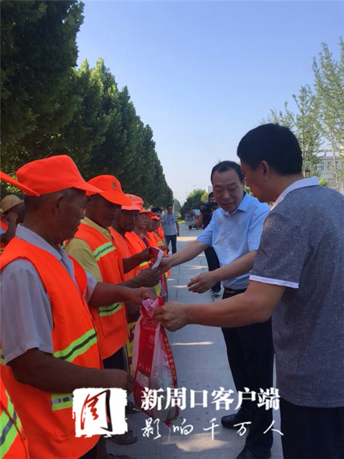 7月20日上午,鄲城縣總工會(huì)開(kāi)展夏季“送清涼”活動(dòng),慰問(wèn)了冒著酷暑堅(jiān)守工作崗位的環(huán)衛(wèi)工人、執(zhí)勤交警和洺河生態(tài)水系治理一線建筑工人,為他們送去了毛巾、白糖、綠豆、風(fēng)油精、洗衣粉、礦泉水等防暑降溫物品。