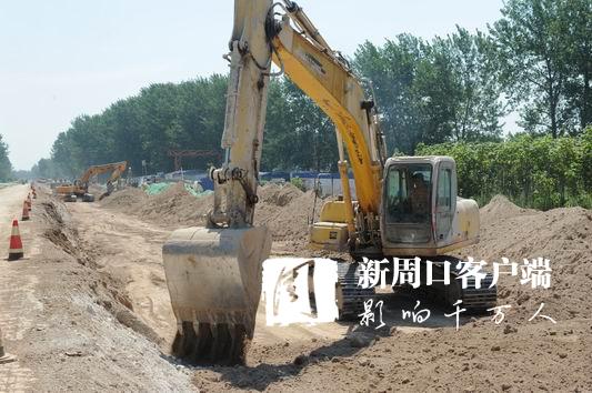 當(dāng)日9時(shí)許,記者來到施工現(xiàn)場,感受到的不僅是天氣的炎熱,更感受到了工人們爭分奪秒趕進(jìn)度的熱情以及施工現(xiàn)場緊鑼密鼓推項(xiàng)目的熱潮。施工現(xiàn)場19臺(tái)挖掘機(jī)、5臺(tái)壓路機(jī),2臺(tái)灰土拌和機(jī)以及數(shù)臺(tái)渣土車、裝載機(jī)齊齊上陣,10臺(tái)灑水車在路面中間來回穿梭,整個(gè)現(xiàn)場機(jī)械轟鳴,緊張有序,呈現(xiàn)出一派熱火朝天的景象。