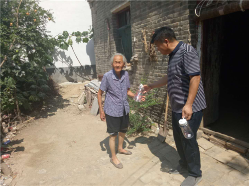 當(dāng)天,張照營(yíng)冒著酷暑走遍前進(jìn)村所聯(lián)系的6戶貧困戶家中送“清涼杯”。和張照營(yíng)一樣,在7月19日這天,太康縣委宣傳部、太康縣文廣新局的幫扶人員走村入戶,來(lái)到所幫扶的貧困群眾家中,開(kāi)展扶貧扶志送“清涼”活動(dòng)。