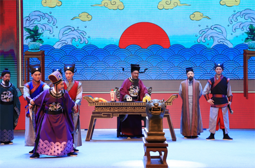 大河網(wǎng)訊 (記者 牧堃 楊鑫陽(yáng) 實(shí)習(xí)生 賈志昊)7月23日,國(guó)家藝術(shù)基金2018年度大型舞臺(tái)藝術(shù)創(chuàng)作資助項(xiàng)目《陳州放糧》在淮陽(yáng)縣群眾文化藝術(shù)中心成功首演。這部“陳州放糧”講述的是包公到陳州懲奸除惡、放皇糧賑災(zāi)的故事。