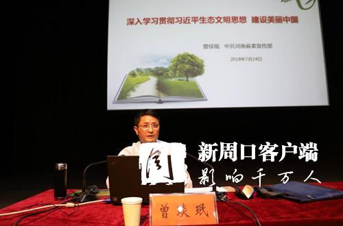 7月25日,河南省學(xué)習(xí)貫徹習(xí)近平生態(tài)文明思想百場宣講活動(dòng)鄲城縣報(bào)告會(huì)在該縣人民會(huì)堂舉行。省委宣講團(tuán)成員、省委宣傳部理論教育講師團(tuán)調(diào)研員曾琰珉主講,鄲城縣委書記羅文閣主持,該縣四個(gè)班子領(lǐng)導(dǎo)和縣鄉(xiāng)兩級負(fù)責(zé)同志及相關(guān)人員共同聆聽報(bào)告。