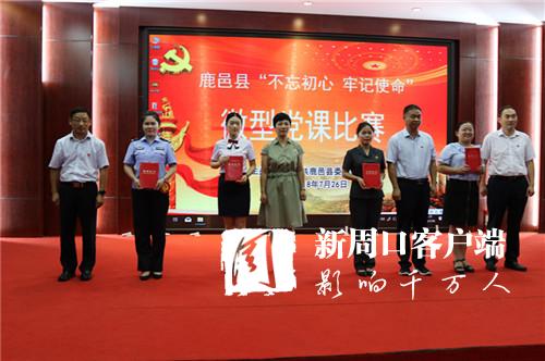 比賽結束后,中共鹿邑縣委黨校副校長韓華周對此次比賽進行了點評,認為各參賽選手都圍繞主題,以小見大,只微見著,充分彰顯了時代性和針對性、思想性和藝術性的有機統(tǒng)一,做到了正面宣傳,獲得好的授課效果。希望他們在接下來的工作和生活中,進一步加強黨性鍛煉、堅定理想信念,永遠保持共產黨人的先進性和純潔性,做名副其實的共產黨人!李向宏、梁建松、付吉廣、武衛(wèi)東還依次為獲獎選手頒獎并合影留念。