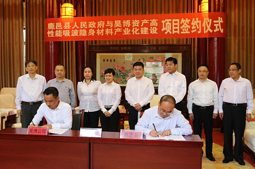 儀式上,閆家明首先代表縣四個班子領(lǐng)導(dǎo)和百萬鹿邑人民對前來參加簽約儀式的李佳一行表示歡迎和感謝。他說,昊博資產(chǎn)高性能吸波隱身材料產(chǎn)品屬于新型材料,又是軍民融合項目,該項目的落地就實現(xiàn)全縣產(chǎn)業(yè)轉(zhuǎn)型升級具有里程碑意義。他指出,近年來,鹿邑縣實施“產(chǎn)業(yè)興城、文化立縣”發(fā)展戰(zhàn)略,堅持五區(qū)聯(lián)動、推進(jìn)項目建設(shè),今年共謀劃項目131個,總投資311億元,今年計劃總投資180億元,其中,列入省重點項目7個。經(jīng)過近年來的努力,鹿邑縣產(chǎn)業(yè)集聚區(qū)晉升為全省二星級,被評為“全省十快產(chǎn)業(yè)集聚區(qū)”。在與昊博資產(chǎn)洽談交流后,縣委縣政府十分重視,經(jīng)過多方考察,一致認(rèn)為該項目符合國家產(chǎn)業(yè)政策,項目簽約落地以后,縣委縣政府將成立建設(shè)指揮部,全力以赴支持項目建設(shè)、企業(yè)發(fā)展。
