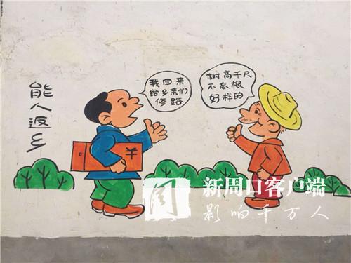 7月31日,記者走進(jìn)后喜崗村明亮的街道,一個(gè)個(gè)白墻房屋側(cè)面上大大小小、五顏六色的脫貧攻堅(jiān)宣傳漫畫(huà)格外引人注目,村里村民在早晚出行時(shí),都會(huì)忍不住停住腳步,細(xì)細(xì)品味脫貧攻堅(jiān)漫畫(huà),從中受到教育和啟發(fā)。