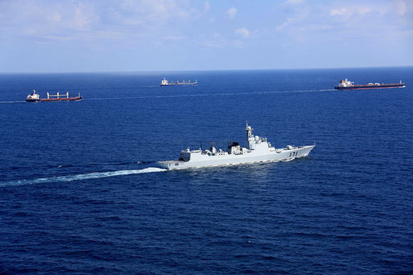 執(zhí)行首批任務(wù)期間,海口艦巡航亞丁灣。
