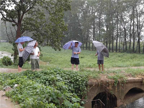 短時強降雨造成交通干渠水位暴漲,由此流入光明渠。城南辦事處書記韓少華放心不下,早早地就走上街頭,到重點地段檢查防洪排澇情況,安排人員進(jìn)行排澇。