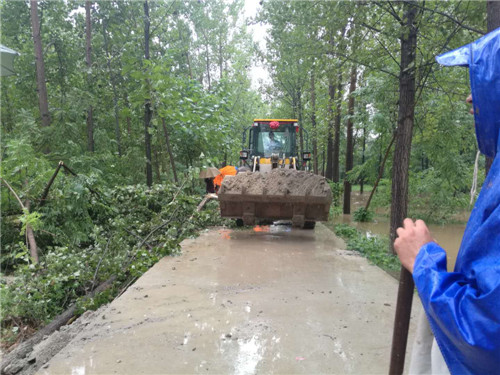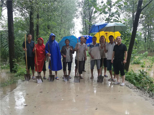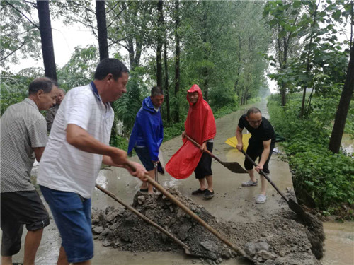 8月19日早7點,陳留張駐村工作隊長李成功、村副主任張建靈發(fā)現(xiàn)險情后,便開始緊急會商,提出科學搶修方案。最后確定,調用本村的鏟車,利用本村商砼站的石料,組織本村的村民,迅速趕赴事發(fā)地點開展搶修工作。