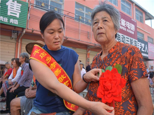 據(jù)平店鄉(xiāng)黨委書記陳靜介紹,近年來,該鄉(xiāng)始終把孝善文化建設(shè)擺在突出位置,堅持以扶貧與扶智、扶貧與扶德相結(jié)合,持續(xù)開展了“好媳婦、好婆婆、好兒子、脫貧光榮戶”評選等一系列豐富多彩的精神文明創(chuàng)建活動,積極倡樹社會正氣,大力弘揚(yáng)時代新風(fēng),推進(jìn)了良好的家風(fēng)、民風(fēng)、鄉(xiāng)風(fēng)持續(xù)向前發(fā)展。為持續(xù)做好全鄉(xiāng)脫貧攻堅各項工作,全鄉(xiāng)28個行政村、87個自然村共集中排查出來268戶、363人獨(dú)居老人戶,95%以上屬于破舊危房。通過宣傳發(fā)動,現(xiàn)在已經(jīng)接回家300多人,對破舊危房全部進(jìn)行了拆除或封堵。今天受到表彰授牌的28個家庭是在“孝善敬老、讓愛回家”活動中涌現(xiàn)出來的“孝善敬老”的模范和標(biāo)兵。