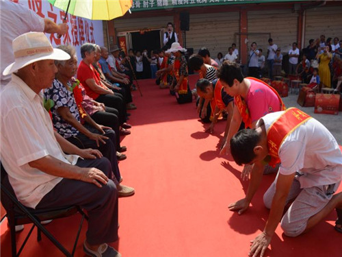 鄉(xiāng)長吳國鋒發(fā)表了熱情洋溢的致辭。他首先代表平店鄉(xiāng)黨委、政府、人大向受到表彰的先進(jìn)模范和先進(jìn)家庭表示熱烈的祝賀并致以崇高的敬意。并詳細(xì)闡述了開展“孝善敬老讓愛回家、孝賢之星表彰授牌暨解決獨(dú)居老年人問題、助力脫貧攻堅的重大意義,他希望受到表彰的先進(jìn)代表和家庭要珍惜榮譽(yù)、再接再厲,繼續(xù)弘揚(yáng)尊老、敬老、養(yǎng)老、愛老的傳統(tǒng)美德,推動全鄉(xiāng)“孝善敬老”文化不斷邁向新臺階?;顒蝇F(xiàn)場宣讀了《平店鄉(xiāng)人民政府敦促將被贍養(yǎng)人接入安全住房共同生活的通告》;與會領(lǐng)導(dǎo)為孝賢之家頒獎授牌;28個“孝子孝媳”在臺上統(tǒng)一施行叩拜大禮;活動結(jié)束后,鄉(xiāng)政府指派3名班子領(lǐng)導(dǎo)和10多名工作人員,分別乘坐6臺輛,由嗩吶隊開路,風(fēng)風(fēng)光光把28個老人送回了家。一路引來不少群眾駐足注目觀看,廣大群眾對此嘖嘖稱贊、拍手稱快。