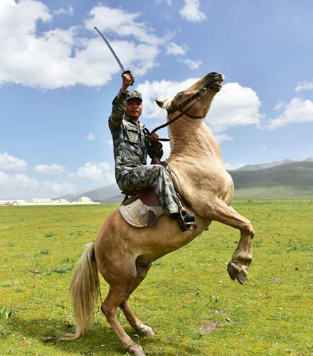 “一開始就‘認(rèn)慫’,哪還有一點(diǎn)騎兵精神可言。”趙雪超暗自打氣。打那以后,趙雪超像根上緊的發(fā)條,和戰(zhàn)馬較上了勁。他晚上練劈刺,白天練馬術(shù)動(dòng)作,被馬一次次地摔下去,他拍掉身上的塵土又一次次地躍上馬背……就是憑借這股不服輸?shù)捻g勁, 3個(gè)月后,趙雪超的訓(xùn)練成績?cè)谶B隊(duì)名列前茅。