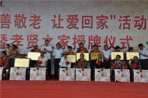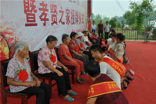 大會開始之前,來自該鄉(xiāng)20個行政村的廣場舞代表隊、戲曲代表隊、嗩吶代表隊先后出場,訾秀玲一曲《黃土高坡》贏得全場觀眾雷鳴般掌聲。緊接著,好兒子、好媳婦代表上臺為自己的父母磕了3個響頭,以表達對父母養(yǎng)育之恩的感激之情,老人們臉上流露出激動和幸福的淚水,現(xiàn)場掌聲經(jīng)久不息??h領(lǐng)導在主席臺上為36個孝賢之家授牌,并向獲獎者表示祝賀。據(jù)介紹,該鄉(xiāng)自開展孝善敬老接老人回家活動以來,已有200多名獨居老人被兒子、媳婦接回家居住。為了表彰接老人回家的好兒子、好媳婦和孝賢之家,該鄉(xiāng)組織、策劃了這次大型活動。