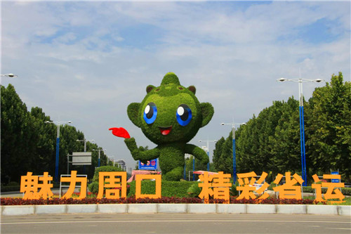 當日上午,記者在東新區(qū)周口大道與文昌大道交叉口看到,巨大的運動會吉祥物造型“泥娃”正在招手,向每一位路人致意?!镑攘χ芸?,精彩省運”的口號立于泥娃兩側,引人注目。中心路口的轉盤花壇內已煥然一新,五顏六色的花朵正以嬌艷的姿態(tài),歡迎四海賓朋共聚周口。