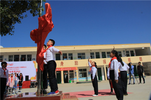 神圣而又雄壯的國歌響起了。孩子們瞪大了眼睛,小擎旗手猛地甩出臂膀,將耀眼的五星紅旗撒在陽光下,全體孩子們行少先隊隊禮,注視著國旗冉冉升起。孩子們的歌聲越來越嘹亮,直到最后還在高喊:“前進,前進進……”