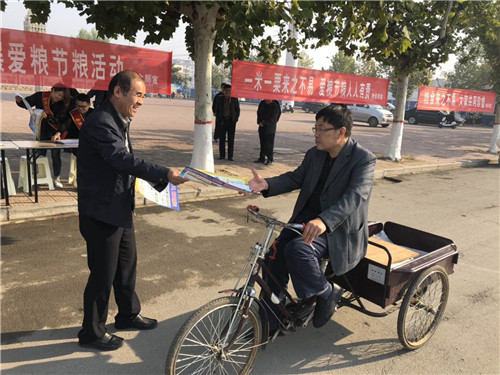 在世界糧食日當天,以縣糧食局為牽頭單位,在縣政府及局門口設立宣傳主會場,制作展板4塊,懸掛條幅32條,出動宣傳車6輛,數(shù)十名工作人員統(tǒng)一佩戴宣傳標語綬帶,為過往市民宣傳講解糧食安全知識,并接受全縣種糧大戶、合作社人員現(xiàn)場咨詢。當日,主會場共發(fā)放宣傳資料3000余份,讓廣大市民了解糧食安全、愛糧節(jié)糧、糧油選購、合理膳食等科普知識。