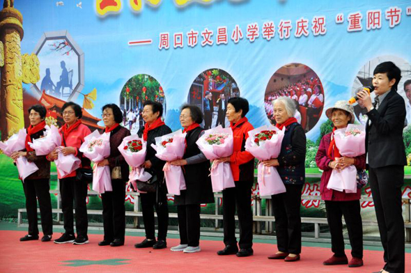 當日9時許,伴隨著歡快的音樂,“重陽敬老節(jié) 捐贈愛幼行”活動正式開始。市文昌小學黨支部書記祁衛(wèi)華向全體師生講述了重陽節(jié)的由來,以及有關重陽節(jié)的詩詞。隨后,于從賢、蔡鳳娥、曾憲美、蘇翠鳳等10多名退休教師代表,在熱烈的掌聲中走上舞臺。