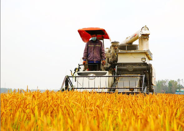 10月21日,扶溝縣城郊鄉(xiāng)五里店村金燦燦的稻田里,村民正忙著收割水稻。眼下正是單季水稻成熟期,該鄉(xiāng)村民紛紛搶抓晴天,忙著收割水稻,田間地頭處處呈現(xiàn)出一派豐收景象。