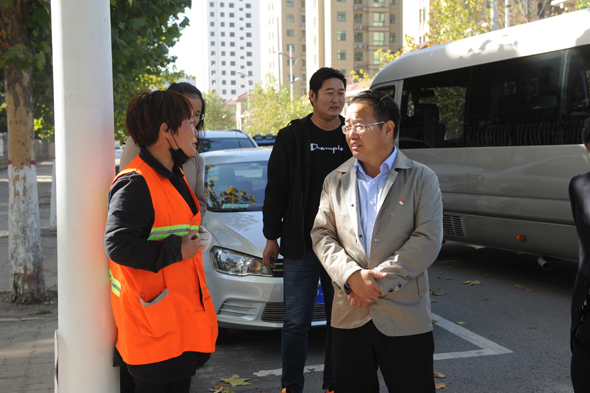 督導(dǎo)中,張建黨親切地與環(huán)衛(wèi)工人進(jìn)行交談,了解他們的工資收入狀況及是否買了人身保險等情況,并勉勵他們一定要盡職盡責(zé),當(dāng)好城市的“美容師”。