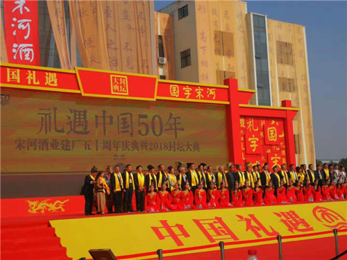 金秋十月,五谷豐登,神州大地,秋釀飄香。在這美好的季節(jié),地處老子故里的河南宋河酒業(yè)迎來了她五十歲華誕。10月30日,“禮遇中國五十年——宋河酒業(yè)建廠五十周年慶典暨2018封壇大典”在鹿邑宋河酒業(yè)生產(chǎn)園區(qū)隆重開幕,省市縣領導、行業(yè)專家與來自全國各地的經(jīng)銷商、供應商以及全國知名品牌的白酒企業(yè)近1500人共同見證這一時刻,見證在豫酒轉(zhuǎn)型升級政策推動下、宋河酒業(yè)的振興之路。