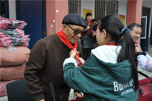 瑟瑟寒風(fēng)抵擋不住火熱愛心,毛毛細(xì)雨阻擋不了赤子情懷。愛心助學(xué)現(xiàn)場,于學(xué)龍不顧高齡,除了給孩子們送去愛心禮物之外,還站在雨中分享了自己的成長經(jīng)歷,教育孩子們要學(xué)會刻苦、學(xué)會拼搏,還要懂得感恩和奉獻(xiàn)。