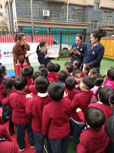 11月是全國消防宣傳月。為進(jìn)一步營造“全民參與 預(yù)防火災(zāi)”的濃厚消防安全氛圍,11月14日,鄲城縣消防大隊消防宣傳員走進(jìn)諾貝爾幼兒園,為該校百余名師生傳授“防火經(jīng)”。