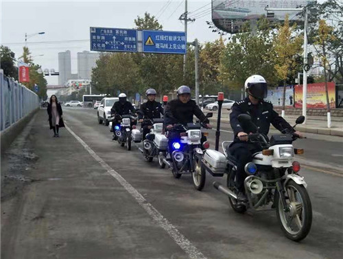 入冬以來,鄲城縣進一步加強治安防控工作,提高快速反應能力,強化震懾效果,提高見警率和管事率,確保巡防無死角,有效預防和打擊各類違法犯罪活動,廣大人民群眾的安全感、滿意度明顯提升。圖為11月14日上午,鄲城縣巡防大隊摩托車隊在城區(qū)主街道巡邏。記者 盧好亮 攝