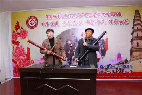 研討會(huì)上,省級(jí)非遺漁鼓道情唯一傳承者杜三合和弟子趙春進(jìn)行了現(xiàn)場(chǎng)表演。