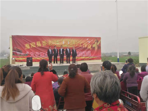 為扎實(shí)推進(jìn)精準(zhǔn)扶貧工作,豐富農(nóng)村文化生活,11月27日至11月30日,淮陽(yáng)縣委老干部局發(fā)揮老干部?jī)?yōu)勢(shì),組織縣老干部藝術(shù)團(tuán)赴四個(gè)幫扶村進(jìn)行“文化惠農(nóng),助力扶貧”慰問(wèn)演出,為廣大群眾送上一份豐盛的文化大餐。