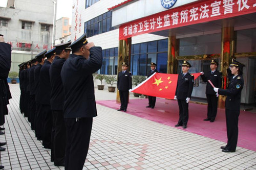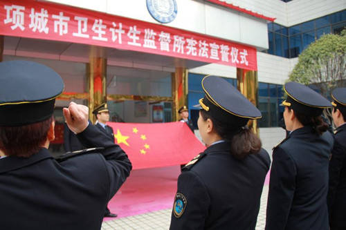 12月4日在我國第五個國家憲法日來臨之際,項城市衛(wèi)生計生監(jiān)督所舉行憲法宣誓儀式,旨在引導(dǎo)全體衛(wèi)生計生監(jiān)督人員牢固樹立憲法至上意識,增強憲法觀念,自覺維護憲法尊嚴。