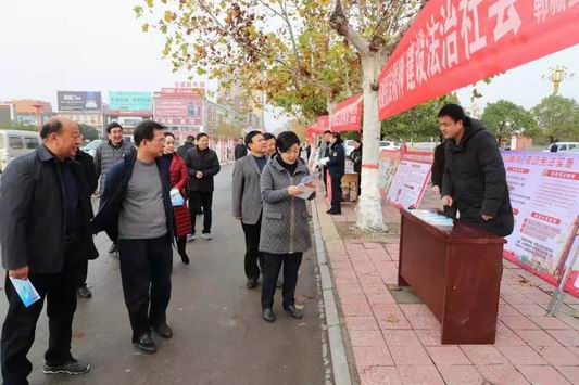 羅文閣一行邊走邊看,和工作人員認真交談,詳細了解普法宣傳教育活動開展情況。羅文閣指出,憲法是國家的根本法,是治國安邦的總章程,全縣上下要堅持以習近平新時代中國特色社會主義思想為指導,把憲法學習宣傳工作擺在當前工作重要位置,深入開展以憲法為核心的法治宣傳教育,教育引導各級組織和全體公民牢固樹立憲法和法律意識,在全社會營造濃厚的法制宣傳氛圍。要深入開展“法律六進”,提高全民法律素質(zhì);要積極開展“民主法治村”“民主法治社區(qū)”創(chuàng)建活動;要繼續(xù)圍繞全縣脫貧攻堅決策部署,開展法治宣傳教育助力精準扶貧攻堅活動;要加強法治文化建設,營造法治文化氛圍;要注重優(yōu)化法律服務質(zhì)量,提升法律服務工作水平,切實維護群眾合法權益;要團結奮進,開拓創(chuàng)新,扎實做好全面依法治縣各項工作,奮力開創(chuàng)新時代法治鄲城建設新局面。