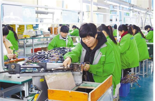 近年來,沈丘縣凱旺電子公司先后在石槽集鄉(xiāng)、馮營鎮(zhèn)、付井鎮(zhèn)等9個鄉(xiāng)鎮(zhèn)設立了27個扶貧車間,吸納了700多人就業(yè),其中包括160名貧困群眾,人均月工資為2000至3000元。圖為扶貧車間里的生產場景。