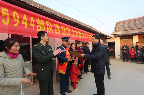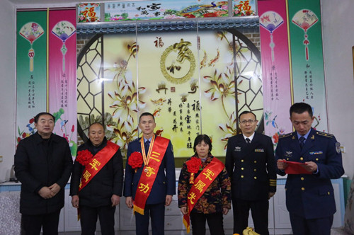 軍地聯(lián)手鑼鼓喧天送喜報(bào),功臣家人披紅戴花受尊崇。空降兵軍某部是特級(jí)英雄黃繼光生前所在部隊(duì),今年以來,先后有4名周口籍官兵在各類重大演訓(xùn)任務(wù)中立功受獎(jiǎng),為了使軍人的榮譽(yù)向官兵家庭拓展、向全社會(huì)輻射,該部決定開展“功耀門楣送喜報(bào)進(jìn)家門”活動(dòng),利用12月14日、15日兩天時(shí)間,選派專人成立“報(bào)喜”小分隊(duì),為我市4名官兵家庭送去立功喜報(bào)和慰問金。