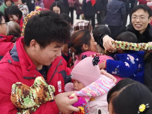 在觀看了一段歡快的舞蹈表演后,與會(huì)領(lǐng)導(dǎo)為獲獎(jiǎng)家庭頒獎(jiǎng),并和志愿者們一起為孩子們戴上了圍巾,現(xiàn)場(chǎng)數(shù)百名群眾報(bào)以陣陣熱烈掌聲。