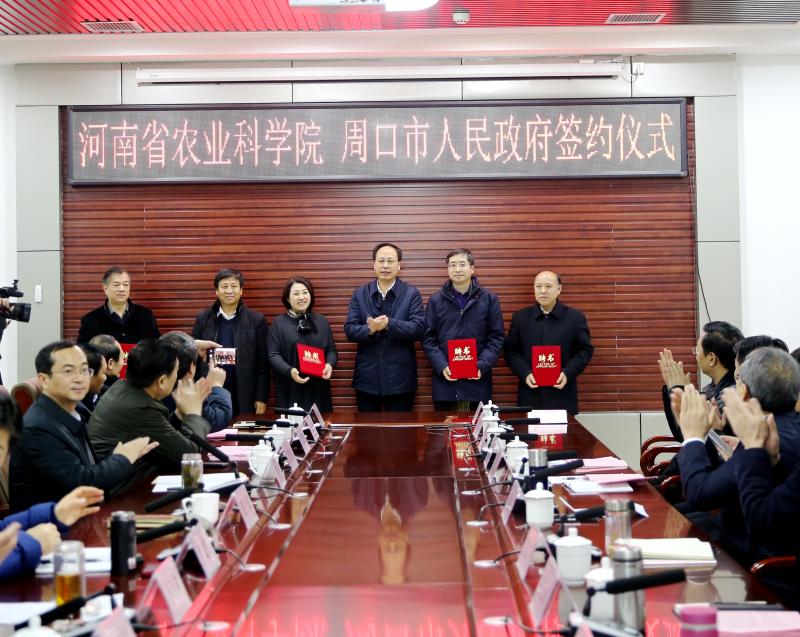 1月9日,河南省農(nóng)業(yè)科學(xué)院與周口市人民政府簽訂全面戰(zhàn)略合作協(xié)議暨河南省農(nóng)業(yè)科學(xué)院鄲城分院揭牌儀式在鄲城舉行,中國(guó)工程院院士、省農(nóng)科院院長(zhǎng)張新友,省農(nóng)科院副院長(zhǎng)衛(wèi)文星,副市長(zhǎng)張廣東,以及鄲城縣委書記羅文閣、縣長(zhǎng)李全林等相關(guān)負(fù)責(zé)同志參加儀式。