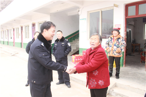 為深入推進(jìn)平安守護(hù)“大走訪”活動(dòng),傳承和弘揚(yáng)敬老、尊老、愛(ài)老的傳統(tǒng)美德, 1月25日上午,港區(qū)分局何學(xué)民政委在分局黨委委員的陪同下,帶領(lǐng)警務(wù)綜合室、社區(qū)警務(wù)大隊(duì)民警,深入轄區(qū)周口港區(qū)李埠口敬老院慰問(wèn)孤寡老人。