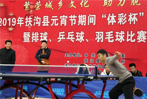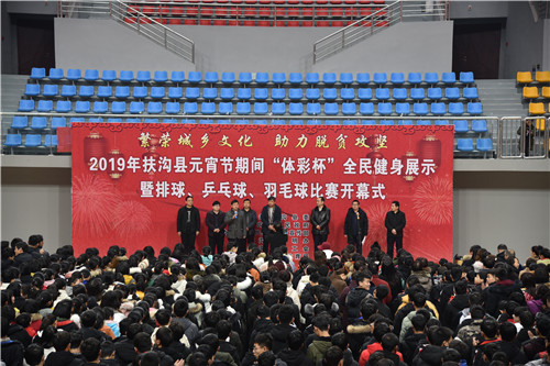 2月17日上午,元宵佳節(jié)即將來臨之際,在全縣脫貧攻堅(jiān)沖刺的關(guān)鍵時(shí)期,扶溝縣2019年元宵節(jié)“體彩杯”全民健身展示暨排球、乒乓球、羽毛球比賽活動(dòng)在縣體育館隆重開幕。活動(dòng)旨在豐富全縣廣大人民群眾的文化生活,助力脫貧攻堅(jiān),為實(shí)現(xiàn)“五個(gè)扶溝”增光添彩??h委常委、宣傳部長(zhǎng)馬昭才,副縣長(zhǎng)吳興華等出席開幕式??h委宣傳部副部長(zhǎng)張根主持開幕式。