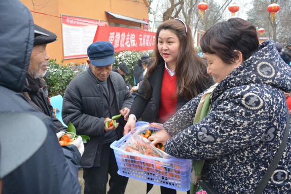 據(jù)了解,此次開展“愛灑敬老院、元宵暖心田”公益活動的發(fā)起人,是剛剛獲得商水縣“道德模范”的愛心人士劉玉英。劉玉英是一名中共黨員,她早年外出務工,近幾年返鄉(xiāng)后任職某保險公司。經(jīng)常關愛留守兒童和老人、對親戚鄰居慷慨相助,她還加入了“周口義工”團隊,踴躍參加當?shù)亍笆∵\會”“殘運會”義務服務活動。“一個人的愛心是有限的,這次自愿報名參加人員都是愛心企業(yè)家,盡管他們工作都很忙,一聽說要去敬老院給老人送元宵都親自來了?!眲⒂裼⒔榻B說,“我們帶來了精心挑選的6件黑芝麻水果元宵、4件蘋果、4件砂糖橘、2件柚子、4件香蕉、2件雪梨,還有市區(qū)‘亨達果品’水果店老板獻愛心捐贈的一箱西瓜,盡管這些東西價值只有1000多元,但畢竟是大家的一片心意!”