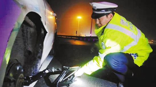 王凱偉通過(guò)詢(xún)問(wèn)得知,司機(jī)張先生幫忙送朋友的妻子和孩子回西華老家,不料車(chē)輛拋錨在半路上。由于沒(méi)有維修經(jīng)驗(yàn),張先生將沒(méi)了氣的輪胎卸下后無(wú)法將備胎安裝上。雨夜高速公路上停車(chē)不安全,張先生和車(chē)內(nèi)人員都心急如焚。