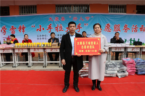 精彩的武術,漂亮的書包、校服……3月3日,太康縣王集鄉(xiāng)新店鋪小學106名學生每人收到了一份“大禮包”。當日,太康縣委宣傳部和縣文明辦在新店鋪村舉辦太康縣“好人節(jié)”暨學雷鋒“小手拉大手”志愿服務活動,30多名志愿者為學生們發(fā)放了書包、文具和校服等,并深入貧困戶家中幫助打掃庭院衛(wèi)生,受到村民的一致好評。