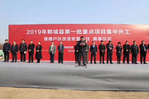 3月6日上午,鄲城縣舉行2019年全縣第一批重點(diǎn)項(xiàng)目集中開(kāi)工暨棚戶區(qū)改造安置項(xiàng)目開(kāi)工奠基儀式??h委書記羅文閣,河南中原建業(yè)城市發(fā)展有限公司董事長(zhǎng)陳建業(yè),總裁馬驍騰,縣長(zhǎng)李全林,縣人大常委會(huì)主任李建軍,縣政協(xié)主席姜永來(lái),縣委常委、常務(wù)副縣長(zhǎng)王智華等出席開(kāi)工儀式。