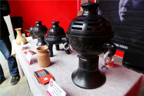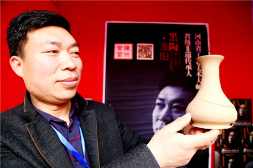 在河南省非物質(zhì)文化遺產(chǎn)黑陶技藝展示臺前,代表性傳承人、淮陽縣工藝美術(shù)家協(xié)會主席張輝,正在向游客介紹黑陶的發(fā)展歷程。隨處可見的普通膠泥,經(jīng)過匠人之手便可變成精美的黑陶器具,這讓眾人感嘆不已。張輝說,這是老祖宗留下的智慧結(jié)晶,也是非物質(zhì)文化遺產(chǎn)的寶貴財富,他要永遠(yuǎn)傳承下去。