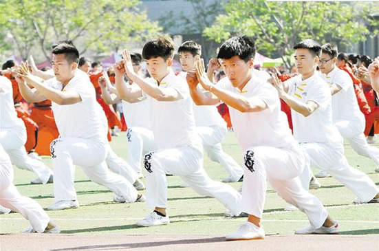 4月18日上午,周口師范學(xué)院第十五屆田徑運(yùn)動(dòng)會(huì)開幕,來自該校各個(gè)學(xué)院的數(shù)千名學(xué)子投入運(yùn)動(dòng)會(huì)健身活動(dòng)中。700多名大學(xué)生在運(yùn)動(dòng)會(huì)上集體表演了心意六合拳,受到觀眾熱捧。記者 梁照曾 攝