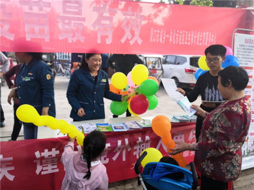 活動現(xiàn)場,工作人員向來往的行人、接送孩子的家長,發(fā)放了創(chuàng)建國家衛(wèi)生城市致廣大市民的一封信,宣傳預防接種、瘧疾的同時,倡導創(chuàng)衛(wèi)工作從我做起。