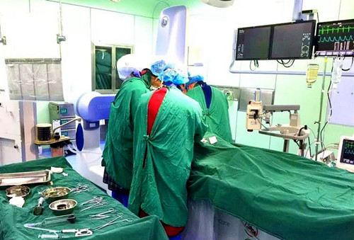 6時40分,護送患者的救護車從張完鄉(xiāng)出發(fā),沿醫(yī)共體縣鄉(xiāng)救治“綠色通道”直達縣人民醫(yī)院胸痛中心,人民醫(yī)院郭環(huán)宇醫(yī)生帶領介入團隊早已萬事俱備……入院后80分鐘,完成造影并開通血管,患者脫離生命危險。術后患者胸痛立刻緩解,生命體征平穩(wěn),手術成功。
