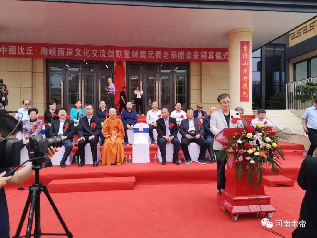 5月11日上午,沈丘縣城新區(qū)新落成的釋廣元藝術館門前熱門非常,來自海峽兩岸的各界人士相聚在這里,見證了中國沈丘·海峽兩岸文化交流暨釋廣元長老捐贈書畫展活動的開啟。