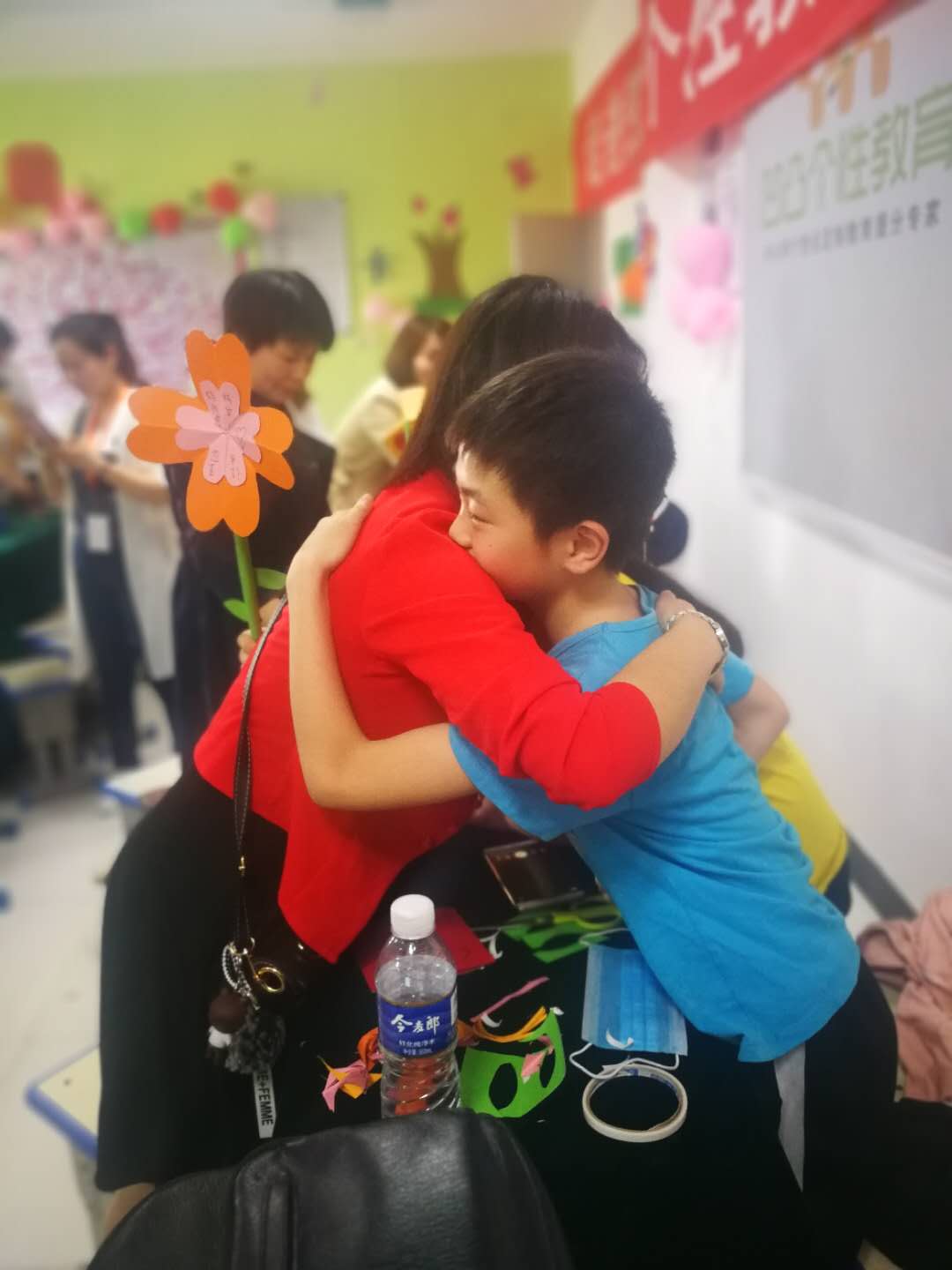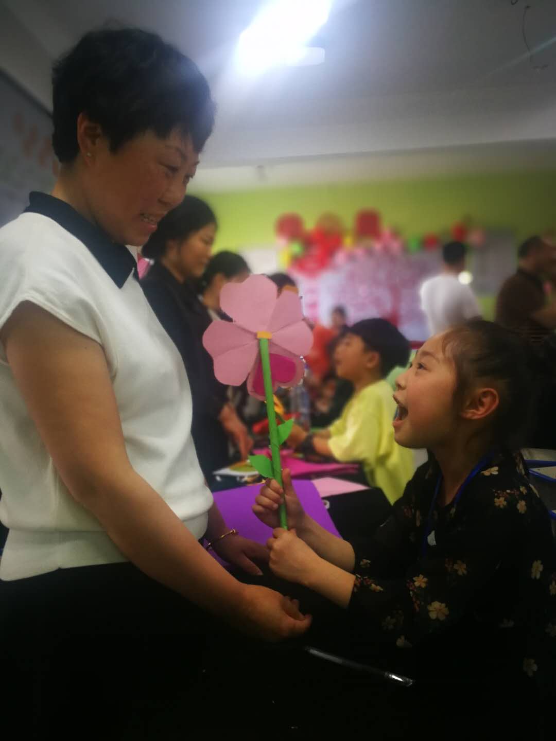 活動(dòng)上,在專業(yè)手工教師的指導(dǎo)以及媽媽的配合下,這些小記者自己動(dòng)手利用剪刀、雙面膠、彩紙等學(xué)習(xí)制做康乃馨紙花。五層紅色的花瓣、兩片綠葉、一根花枝,經(jīng)過近一個(gè)小時(shí)的反復(fù)實(shí)踐,一朵朵紙花陸續(xù)制好,成功的喜悅映紅了孩子們的笑臉。在祝??ㄆ蠈懴聦寢尩淖8UZ后,孩子們手捧用彩紙包裝好的紙花,拿著祝??ㄋ偷侥赣H手中,和媽媽熱情擁抱、向媽媽表達(dá)愛的祝福。