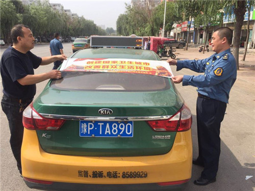 由區(qū)五城聯(lián)創(chuàng)指揮部牽頭,組織區(qū)城管局、區(qū)交通運(yùn)輸局等職能部門,利用城管執(zhí)法車輛、環(huán)衛(wèi)保潔車輛、交通執(zhí)法車等,統(tǒng)一張貼宣傳標(biāo)語進(jìn)行宣傳。日出動各類宣傳車輛109輛。區(qū)五城聯(lián)創(chuàng)指揮部辦公室會同區(qū)交通運(yùn)輸局在中心城區(qū)出租車上統(tǒng)一張貼創(chuàng)衛(wèi)宣傳標(biāo)語和禁煙標(biāo)志,累計(jì)張貼出租車600余輛。多種載體宣傳。利用車體標(biāo)語、車載音響、大喇叭、出租車頂燈等載體,大密度宣傳創(chuàng)衛(wèi)標(biāo)語口號,播放統(tǒng)一灌制的創(chuàng)衛(wèi)宣傳音頻。